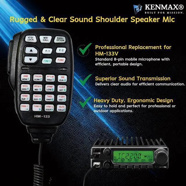 )Features: 8-Pin RJ45 Connector Provides a strong, reliable link between your radio and microphone. High-Quality Audio Output Clear sound transmission, even in high-noise environments. Rugged & Durable Construction Built with impact-resistant engineering plastic for long service life. Comfortable to Use Compact and ergonomic design with responsive DTMF keypad for effortless operation. Stable Compatibility Designed specifically for ICOM mobile radios such as IC-2200H, IC-V8000, and IC-2800H.