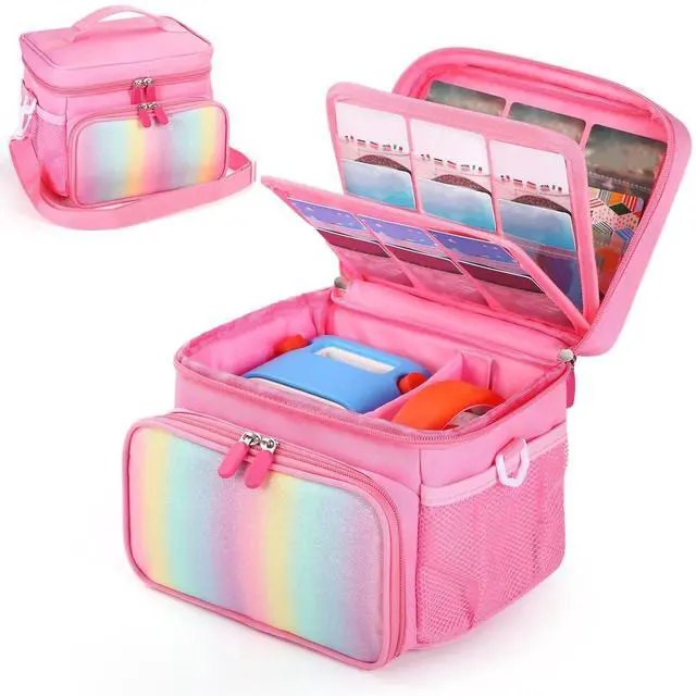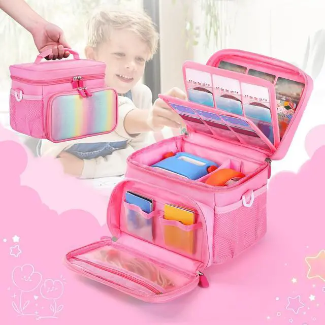 COMPATIEBLE WITHThe bag protected by durable shockproof material, helps machine against scratches and damage during daily life or travel. Case Only ^^ Large Capacity StorageThe bag large capacity allows for daily storage needs, The pockets can store up to 30 cardsIt can also store other daily necessities. ^^ Easy to carry 8.5 * 7.5 * 6.5 ( 21.5 *19* 16.5 cm)Carrying bag is designed with handle and shoulder strap, giving you the option to choose the most convenient way to carry it. Whether it's handheld or over the shoulder can be easily transported for family trips and entertainment both indoors and outdoors.