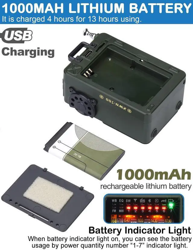 In addition, there are corresponding band & tuning LED indicators, and the volume is adjusted by knob, which is easy to operate. ^^ [Novel Experience] - The personalized music spectrum lights create a dynamic light effect that changes with the sound and gives you a cool atmosphere. Also, In the Bluetooth /MicroSD card playback, there are six EQ sound effects to choose from, it can meet individual needs and give you more enjoyment of the music. Hence, this retro speaker will make you more entertained in your life. ^^ [Type-C Charging, Sleep Timer] - ZHIWHIS ZWS-700 MP3 player can provide up to 10 hours of playtime on a single charge.