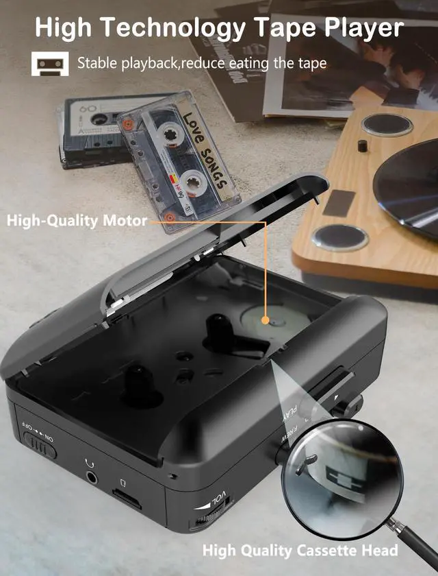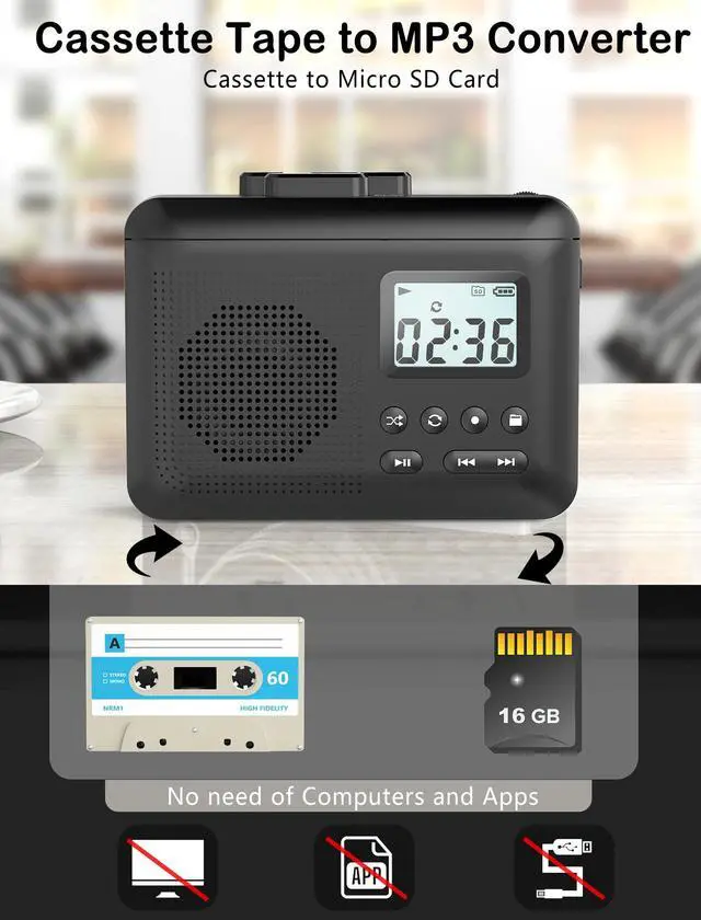 New Classic Cassette PlayerMany times we don't want the "old" cassettes just sitting in the corner or stuck in the past. The classic taste that cassettes bring to us is irreplaceable. You need a cassette player to relive old memories. This tape player uses a premium tape head to optimize the sound of tape playback, making it smoother to play tapes and less likely to jam and eat tapes. Having such an old-fashioned cassette player to play music, we can make the classics never go out of style. ^^ Cassette to MP3 ConverterThis cassette player does not just play tapes.