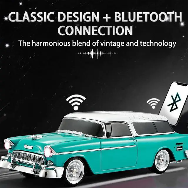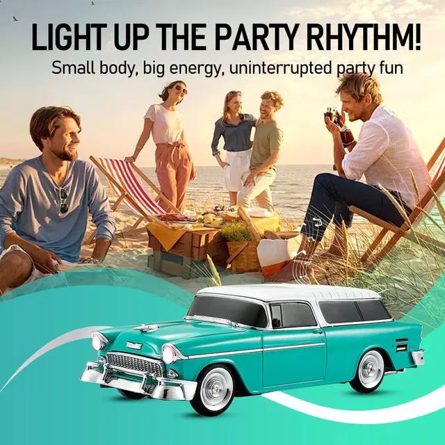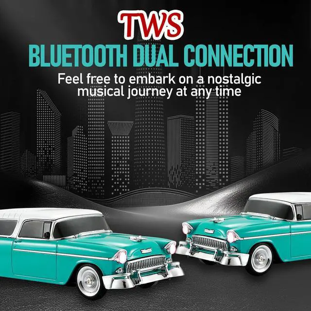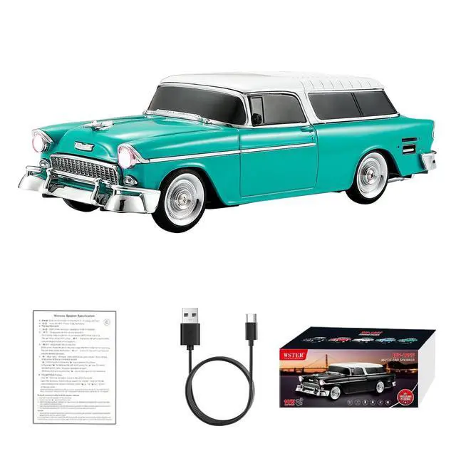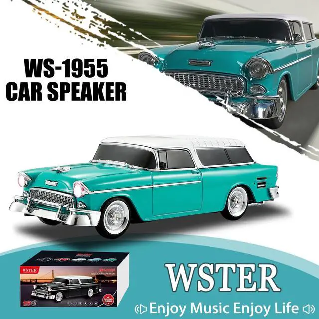 Bring music and style together with the WSTER WS-1955 Retro Sedan Bluetooth Speaker. This unique speaker merges nostalgic automotive design with modern audio features, making it a standout piece for home, office, or outdoor use. Enjoy highdefinition sound through Bluetooth streaming, USB/TF card playback, or FM radio. Link two speakers in TWS mode for an expansive stereo experience that fills any space. Dynamic LED party lights sync with your music to elevate the atmosphere, while the handsfree microphone ensures you stay connected during calls. With movable wheels and a compact form factor, the WS1955 is as portable as it is coolideal for gifting, decorating, or taking your tunes on the go.