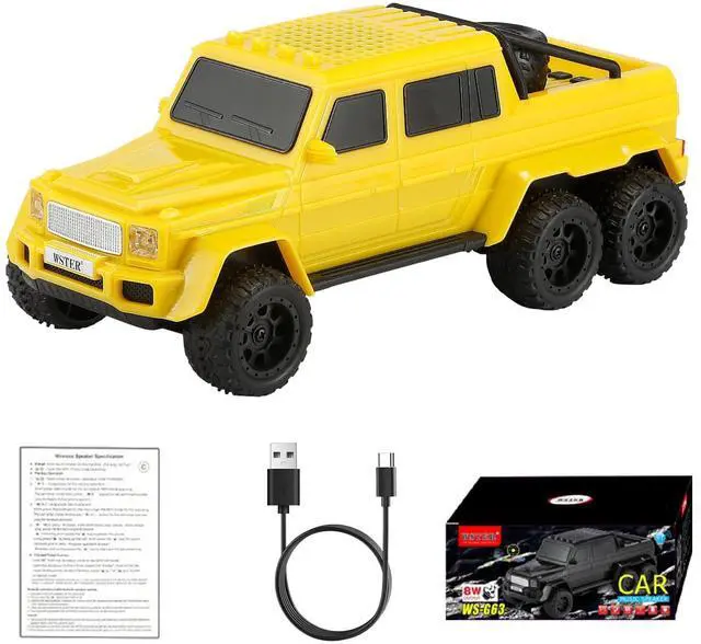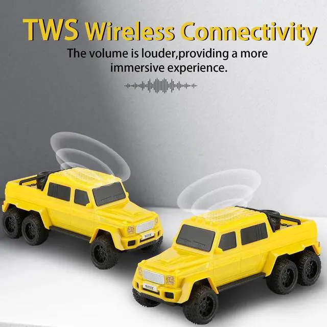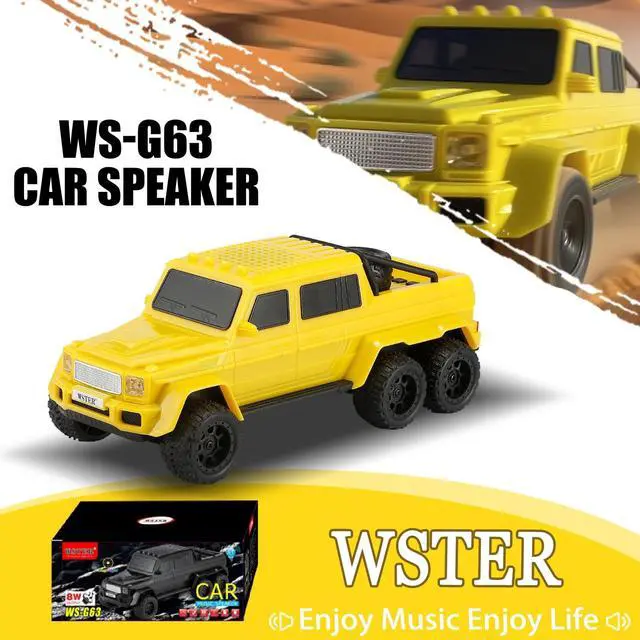 Unique 6-Wheel Pickup Truck Design Detailed replica with rugged proportions and movable wheelsan eye-catching piece for desktops, shelves, or party setups. Ideal for collectors and truck fans. ^^ HD Sound with TWS Stereo Pairing Clear treble and deep bass in standalone mode, or connect two WS-G63 units wirelessly via TWS for immersive stereo audioperfect for outdoor parties and home listening. ^^ Multiple Playback Sources + FM Radio Stream via Bluetooth, play from USB or TF card, or enjoy FM radioversatile options for any environment without relying solely on your phone. ^^ LED Party Lights + Hands-Free Calls Colorful lighting effects pulse to the rhythm, setting a lively mood.