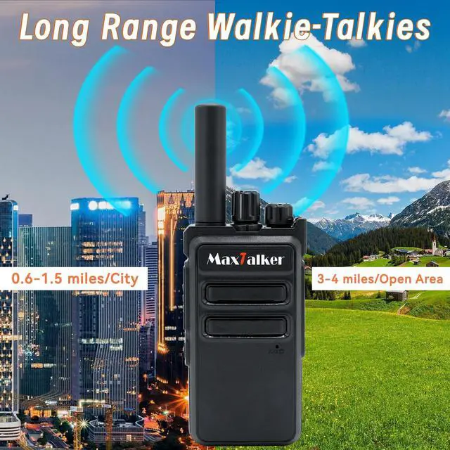 Long Range Walkie Talkies: The MaxTalker MT-5X walkie talkies design with 16 channels, VOX with 1-9 sensitivity levels, low battery alert etc. The effective communication range of these walkie talkies varies based on the terrain's obstructions. In unobstructed open areas, these professional walkie talkies can reach longest distances about 4 miles. This ensures you can maintain connection with your friends and family during outdoor activities such as camping trips or hikes. ^^ Enhanced Earpiece with