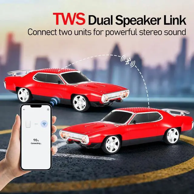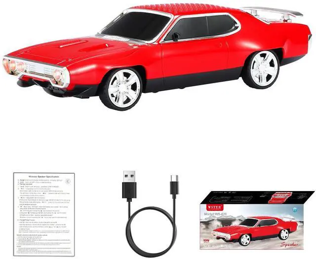 Classic Muscle Car Design Inspired by vintage sports coupes, the WS-620 features smooth lines, a rear spoiler, and chrome accents that enhance its collectible appeal. ^^ High-Quality HD Sound Delivers full-range stereo performance with clean highs, balanced mids, and deep bass in a compact, stylish form. ^^ Bluetooth 5.4 & TWS Pairing Connect wirelessly for fast, stable playback or pair two WS-620 speakers for a rich dual-channel stereo experience. ^^ LED Headlights & Multi-Mode Playback Headlights light up when music plays; supports USB, TF card, and FM radio for versatile entertainment options.