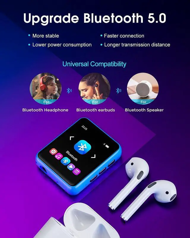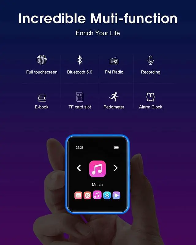 MP3 player: This Bluetooth MP3 player has a full touch screen, mirror surface, and zinc alloy design, scratch resistance (with protective cover & lanyard), it is small and exquisite, suitable for outdoor, travel, play, it Smooth operation is a great and convenient mp3 player, and supports one-key lock screen. ^^ Bluetooth 5.3 technology & support background operation Bluetooth 5.0 has faster transmission speed, stable performance, wide compatibility, strong anti-interference ability, (support background operation, no longer unable to use other functions due to Bluetooth connection), enjoy music through Bluetooth speakers Or Bluetooth headsets, keep you away from cable troubles, [Please
