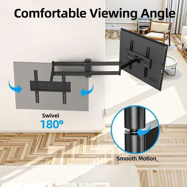 LONG EXTENSION ARM: This extra long arm tv wall mount can extend 31.22 from wall for optimal viewing from various positions. When you need to save space without compromising aesthetics, it elegantly retracts to just 2.52". Its unique extra-long arm design is particularly suited for corner placement, allowing TV viewing from any spot in your room ^^