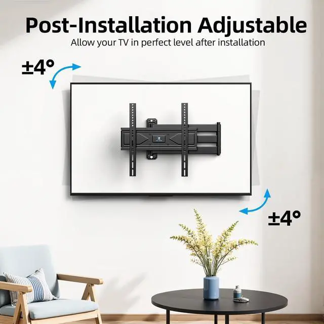 ADJUSTABLE VEIW ANGLE: This full motion tv wall mount with +5/-12 tilt to reduce glare; Swivel tv mount with +/-90 swivel (max swivel angle depends on screen size); Level adjusts +/-4 for maximum viewing flexibility ^^