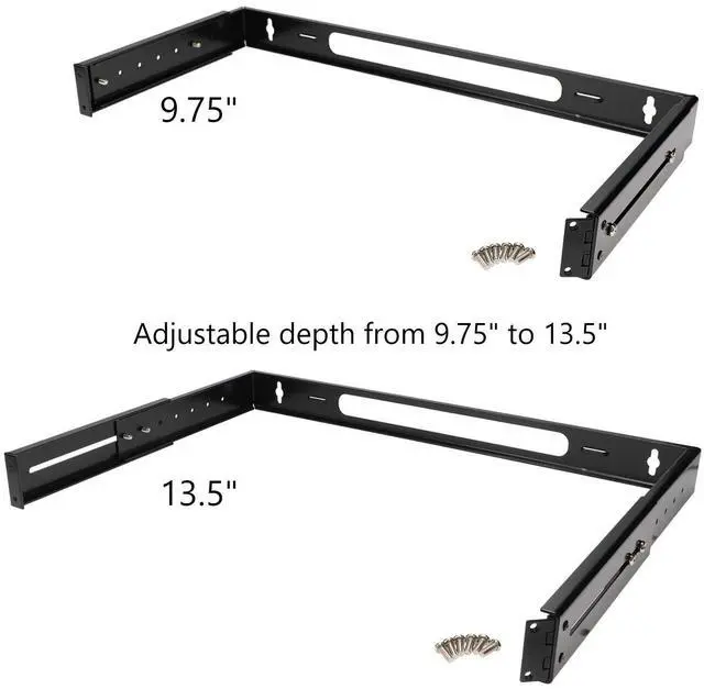 This versatile wall mount bracket adjustable depth of 9.75" to 13.5". You can mount patch panel or switch up to 13" deep.