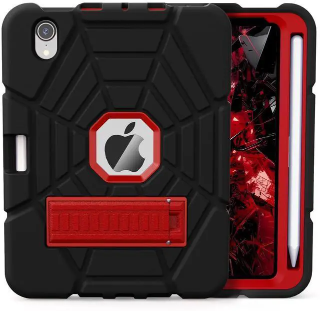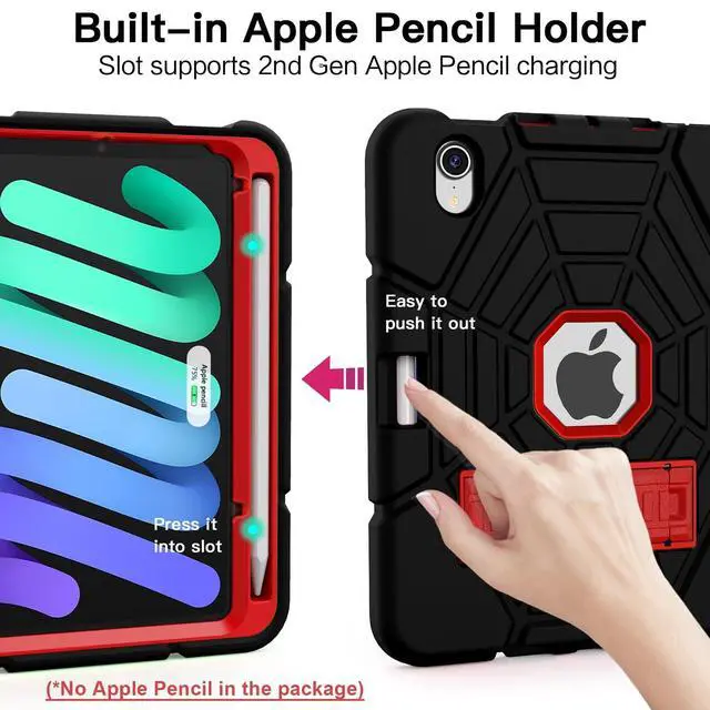 Grifobes Case for iPad mini 7th 2024 (A17 Pro) / Mini 6th Generation 2021 8.3", Heavy Duty Shockproof Cover with Pencil Holder Stand, for i Pad Mini 7/6 Gen 8.3 inch Case (Black+Red+Red)