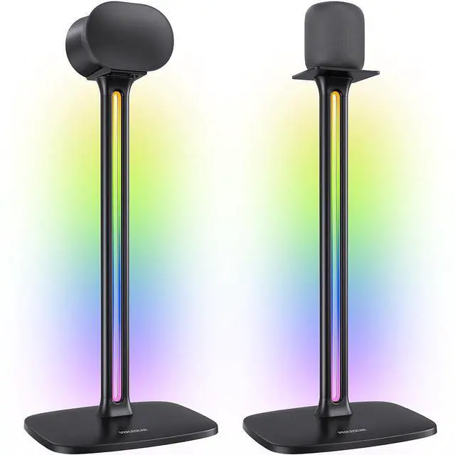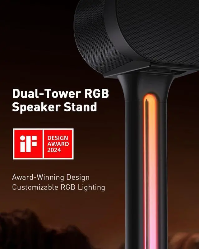 ^^ Vibrant Light Show: This speaker stand features multi-color RGB ambient lighting that turns your music into a stunning audio-visual experience, while elevating your speakers to the perfect height for cyberpunk immersive sound. iF award-winning for its innovative design, this dual-pillar stand transforms how you experience sound in your living room, home theater, or gaming room. ^^ Versatile