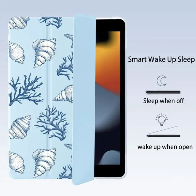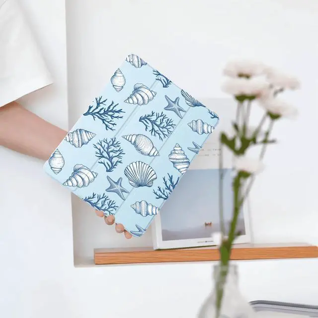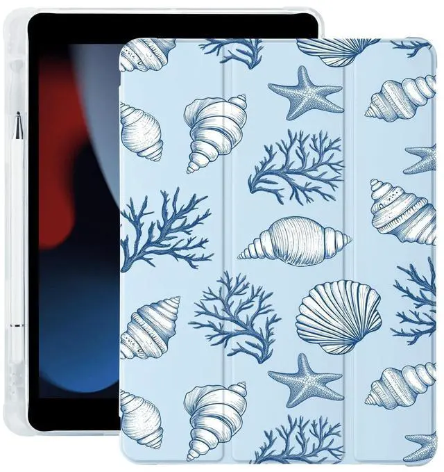BlHMCASE Cute Conch Shell for iPad (A16) 11th Generation Case 11 Inch 2025, for iPad 10th Generation Case 10.9 Inch 2022 with Pencil Holder, Auto Sleep/Wake, Blue Leather Soft TPU Back Cover