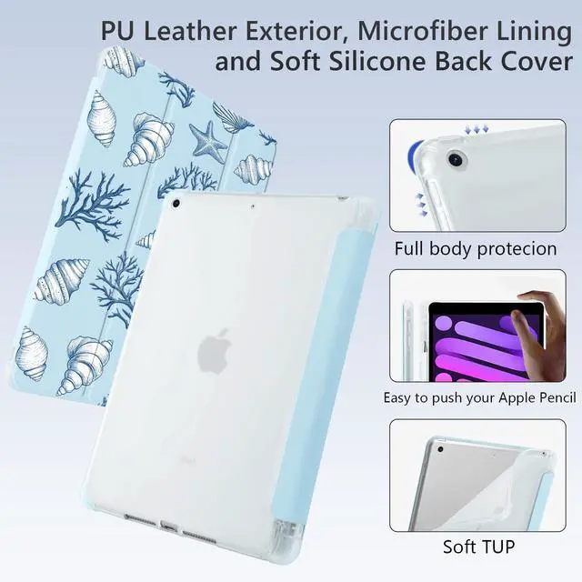Please Note: It doesn't compatible with any other tablet models ^^ Well made with PU exterior, microfiber lining and soft silicone back cover, offers full body protection from drops and scratches ^^ Built-in Apple Pencil holder, grab your Apple Pencil effortlessly whenever you want, keep the apple pencil as safe as your iPad all the time ^^ Cover has flip capability to transform the case into a viewing stand and typing stand. Available in a variety of bright colors and unique pattern ^^ Built-in magnetic strip provides auto sleep / wake function. Precise cutout and design allow easy access to all ports, sensors, speakers, cameras