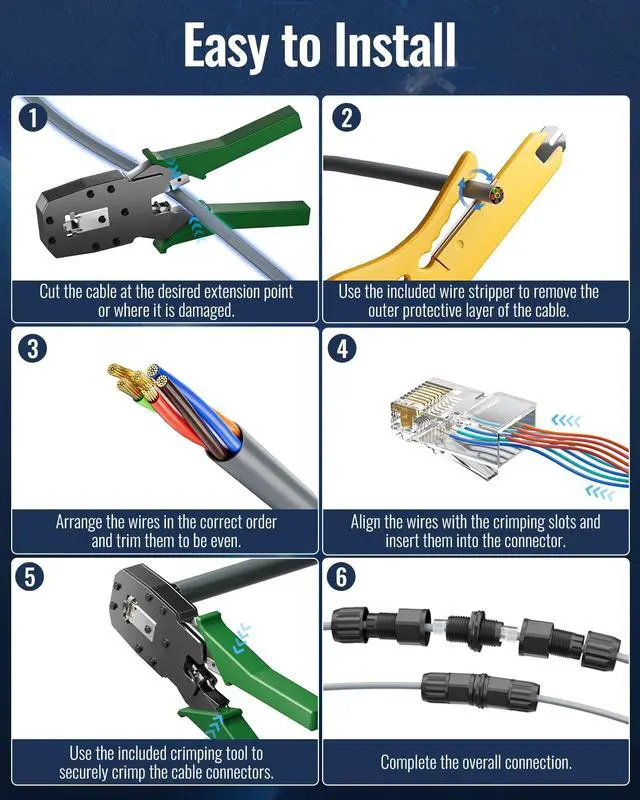 ^^ Repair and Extend: No need to buy an expensive new cable. Our product easily repairs your existing 75-foot cable and extends it to 150 feet. If your cable has been chewed by rodents or damaged for any other reason, causing the outer casing to crack and wires to be exposed, leading to slow network speeds and frequent signal drops, this cable repair and extension kit is the perfect solution to your problem.