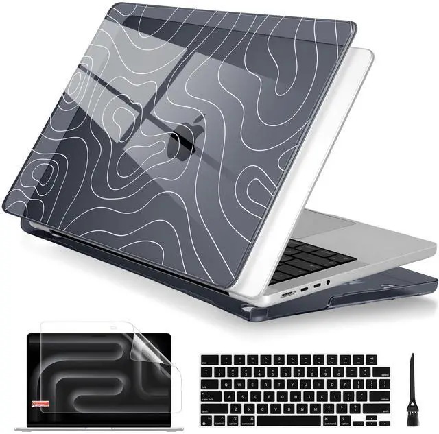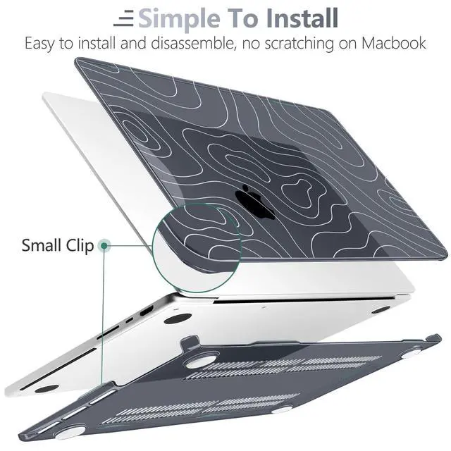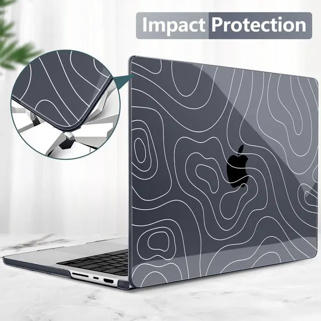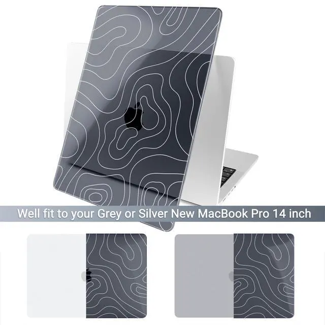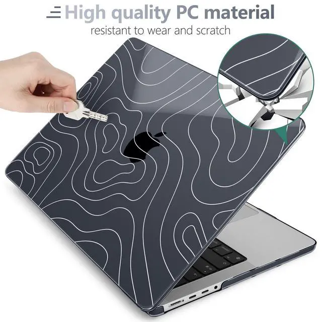 Includes: 1x High-Gloss Hard Case (Top & Bottom), 1x Matching Silicone Keyboard Cover (protects against dust/spills), 1x HD Screen Protector (anti-scratch), and 1x Keyboard cleaner. ^^ "SECOND SKIN" AESTHETIC & 1.2MM SLIM PROFILE Weighing only 280g with a profile of just 1.2 mm, this case adds robust protection without the bulk. The high-gloss, semi-transparent finish creates a premium glass-like look, allowing the Apple logo to subtly shine through the specific pattern, blending technology with art. ^^ PROFESSIONAL HEAT DISSIPATION Designed for the fanless MacBook Pro. The bottom cover features precision-cut ventilation grilles to promote natural airflow and heat release. Four raised anti-slip rubber feet increase desk grip and create an air gap for better cooling performance during long work sessions. ^^ DURABLE & SCRATCH RESISTANT Crafted from high-grade polycarbonate. The snap-on design with non-invasive micro clips makes installation easy and safe (won't scratch your bezel). Effectively protects your device from fingerprints, scrapes, drops, and daily wear while keeping all ports fully accessible.