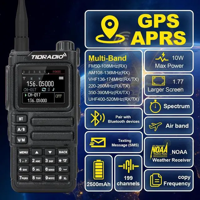 TIDRADIO TD-H9 10Watt APRS&GPS Ham Radio Handheld, Multi-Band Two Way Radio with 3000mAh Battery(2 Pack)