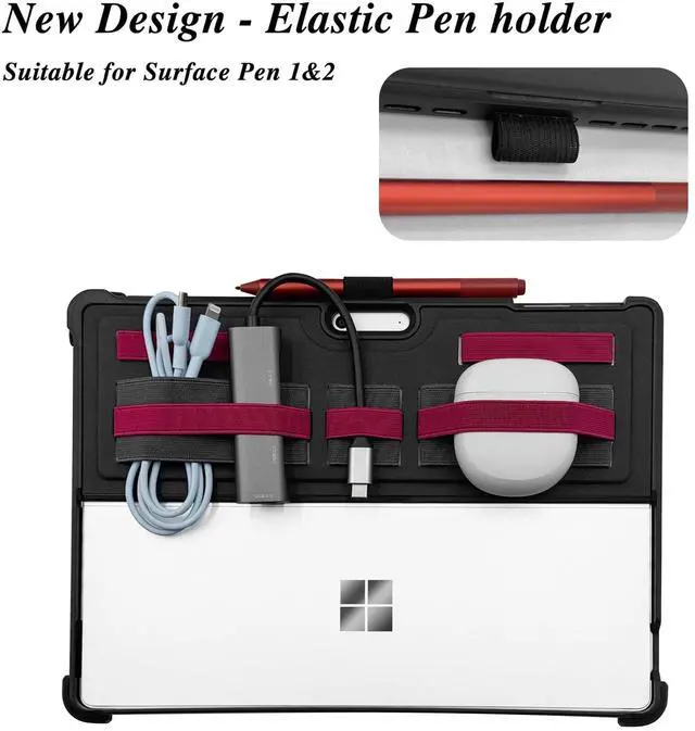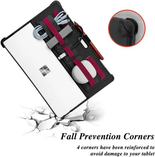 Protect your Surface Pro 11/10/9 with this rugged yet lightweight case. Featuring a sleek design with a built-in organizer and pen holder, it offers comprehensive protection while keeping your device organized. The case is engineered to withstand drops and impacts, safeguarding your tablet from scratches and damage. With precise cutouts for easy access to all ports and features, you can enjoy seamless functionality without compromising on protection. Crafted with premium materials, this case ensures long-lasting durability. Keep your Surface Pro secure and within reach with this practical and stylish accessory.