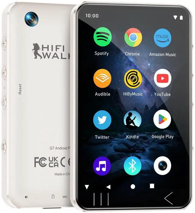 The HIFI WALKER G7 Android MP3 Player offers a phone-free way to enjoy music, audiobooks, and videos. Powered by Android 13 with 3GB RAM, it delivers smooth performance for streaming and local playback. With Bluetooth and WiFi, the G7 supports online music apps as well as offline playback for common audio formats. It features 144GB total storage (16GB internal plus included microSD card), giving you plenty of space for music and media. The 4-inch HD touchscreen supports MP3 and MP4 playback up to 1080p. A built-in speaker, camera, and parental control settings make it suitable for both adults and kids who want a simple, portable media device without relying on a smartphone.