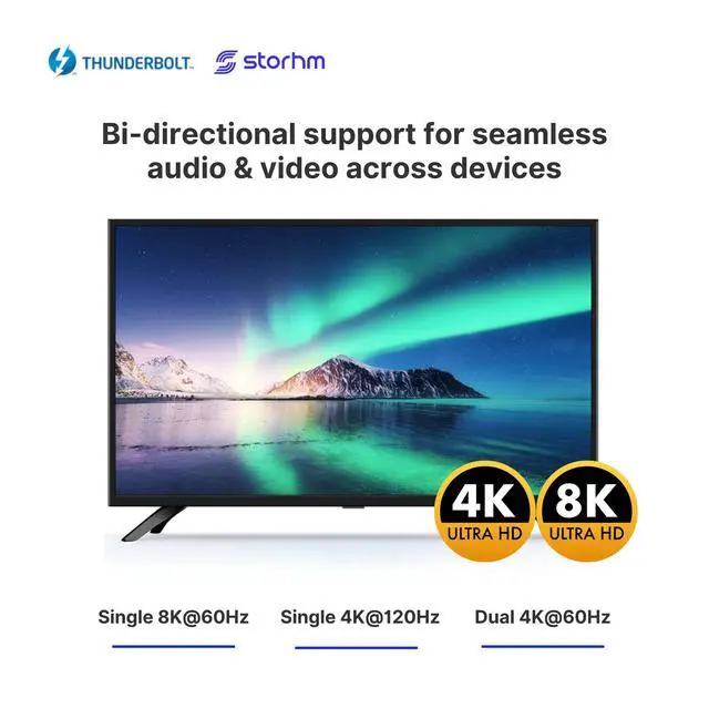 Functions: Streamline your workspace with the ability to daisy-chain multiple devices. Whether its data transfer, audio and video output, or charging lightweight laptops, a single Thunderbolt 4 cable does it all. Simplify your desk setup and enhance productivity. ^^ 8K Video &