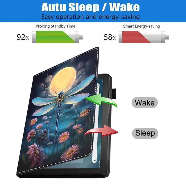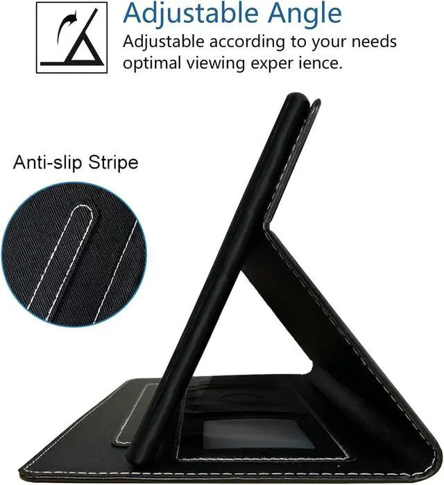 Perfectly decor your tablet, Beauty and function come together. Made of High end PU leather, features shockproof, protective smooth outer casing and sturdy exterior with soft microfiber interior keeps your tablet screen safe. Convenient multi viewing kickstand for watching movie or typing. Great for holding in landscape mode to watch videos. Designed with 3 delicate card slots inside for you to carry your necessary cards. There is a flexible pencil holder at the edge of the shell for keeping your stylus in place (Stylus is not included). Provide auto sleep/wake, Open the case to wake up and close the case to shut off, Saved power.