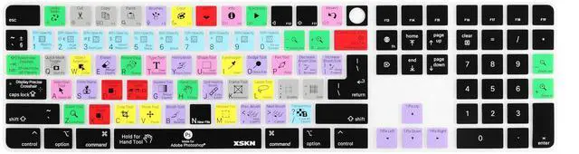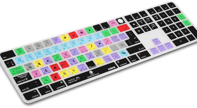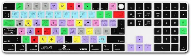 XSKN Photoshop shortcuts silicone keyboard cover skin fits for 2021-2023 iMac 24 inch M1 M3 magic keyboard with touch ID and numeric keypad 2022 Mac Studio A2520, suit for both of EU/UK version keyboard and US version keyboard ^^ XSKN magic keyboard skin DO NOT FITS FOR model number A1314 A1243 A1843 A3119 full magic keyboard ^^ XSKN Photoshop shortcuts silicone keyboard skin provides language letter instruction design for Apple full magic keyboard A2520 user, who can rely on PS shortcuts function hotkeys descriptions to quickly increase their learning and memory, improving their efficiency ^^ XSKN silicone keyboard skin is made of the quality soft silicone material available, with each key individually molded in a 1:1 ratio to fit the keyboard keys, providing a comfortable typing experience and reducing noise ^^ XSKN transparent silicone keyboard skin uses high-quality silicone oil to manually silk-screen print color blocks and text, which are fused to the silicone skin through heat to form a long-lasting professional appearance, making it soft, stand wear and tear, and easy to clean