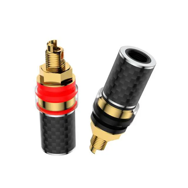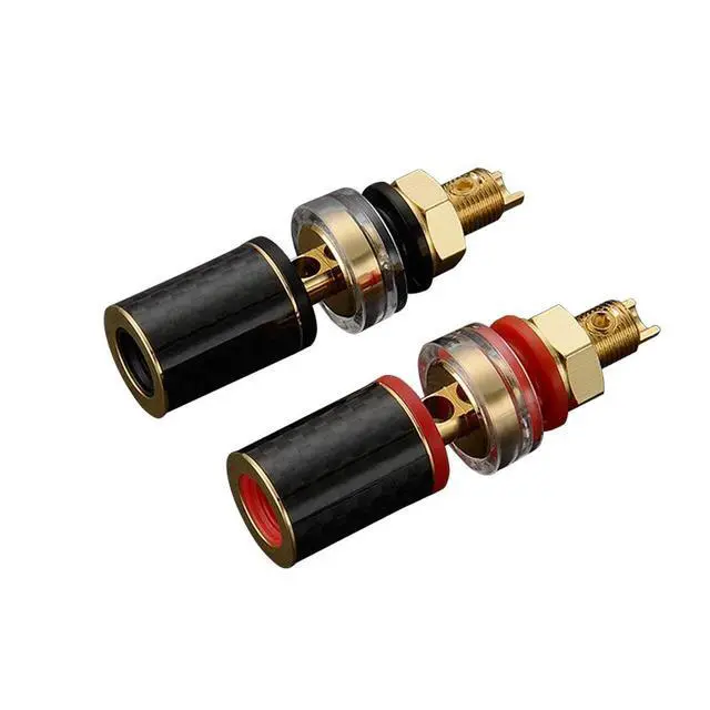 HiFi speaker binding posts, banana plug sockets, and banana jack connectors provide easy installation and maintenance for connecting speakers in a commercial or residential environment. ^^ Gold-plated pure copper wire ensures a high-quality audio signal with minimal signal distortion, maximizing the sound quality of the speaker. ^^ Screw locking design of the Viborg Hi-end speaker binding post ensures a tight, secure connection, reducing the risk of damage or accidental disconnection. ^^ The insulating material composed of nylon and polycarbonate has excellent electrical insulation, can withstand high temperatures, and prevent moisture damage.