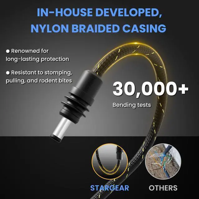 ^^ Long Lifespan: Built to last, this STARGEAR Starlink mini power cable features a braided fiber design and reinforced strain relief for extreme durability. With a thicker metal connector, it withstands.
