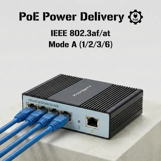 4PoE Gigabit PortsSupports IEEE 802.3 af/at up to 30W per port, ideal for powering IP cameras, APs, and industrial terminals ^^ Wide 48-57V DC Redundant InputEnsures stable, uninterrupted operation in demanding industrial power environments ^^ Rugged IP40 Aluminum HousingFanless, dust-resistant, and vibration-tolerant for long-term reliability ^^ Extreme -40~85 OperationGuaranteed stable performance in harsh outdoor and factory environments ^^ Industrial-Grade EMC Protection15kV air/8kV contact ESD and enhanced surge immunity for reliable data transmission