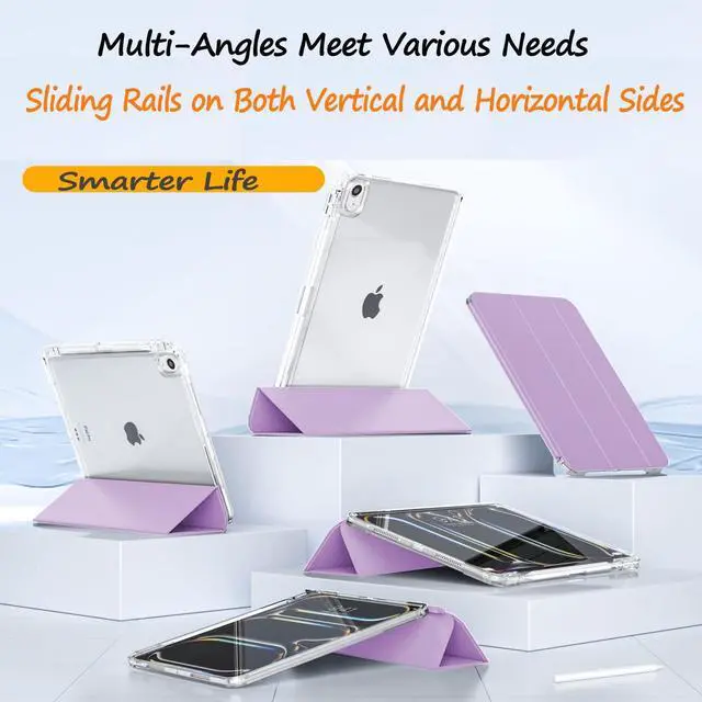 Sliding Track& Three Angles: Faux Leather front and clear TPU back are connected by sliding track. They can be separated and connected easily by sliding up and Down. You can keep the back cover ONLY if it's necessary. Built-in magnets strips provide stabe trifold stand of 3 angles. You can free your hands to type, draw, have video calls, read and watch videos. Slide the long side of your iPad in the track if you want a horizontal view, slide the short side of your iPad in the track if you want a vertical view ^^
