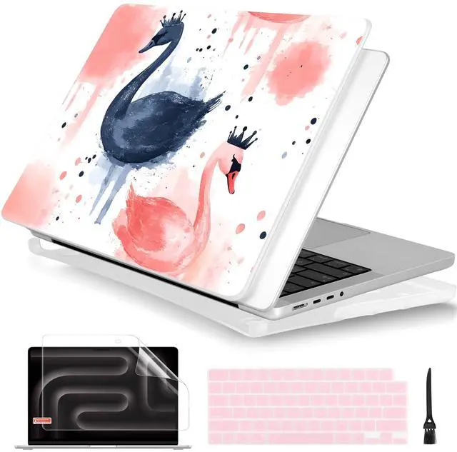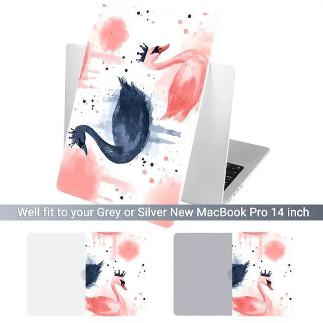 Batianda for MacBook Pro 14 Inch Case 2026-2021 Release M5 M4 M3 M2 M1 Pro/Max, 1.2mm Slim Graphic Hard Shell Cover with Keyboard Cover, Screen Protector 4-in-1 Bundle, Swan
