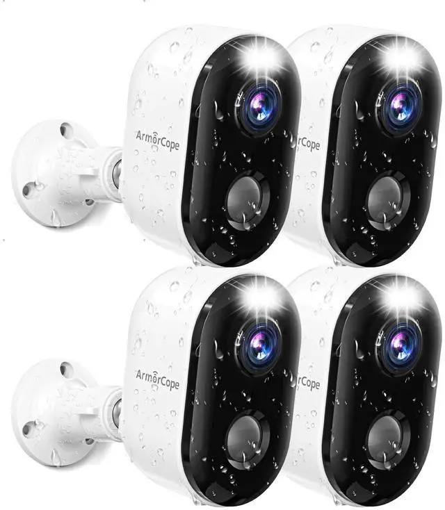 100% Wireless & Rechargeable & WaterproofThis outdoor camera wireless is easy to use without complicated wiring and power outlets, and the built-in rechargeable battery will last for 1 - 5 months use on a single charge. IP66 waterproofing allows the camera to work in any weather, and it can be mounted virtually anywhere with the supplied bracket and screws for worry-free installation! (*Only supports 2.4G hz WiFi) ^^ 2K High Resolution & Full Color Night VisionThe outdoor camera comes with 2K HD resolution, equipped with state-of-the-art color night vision technology and dual light source night vision.