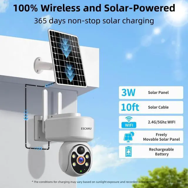 You could share camera acess with your families, you and your families could liveview camera at the same time ^^ 100% Wireless & Solar Powered & All in one kits & also stand alone useThis outdoor camera comes with solar panel, rechargeale battery and built in wifi. Solar panel recharge battery, battery power camera when there is no sunshine. 100% wireless free, no wire hassle. No need power plug-in. The cameras for home security outdoor you could use as a replacement for wireless cameras kits, you also could use it stand alone.