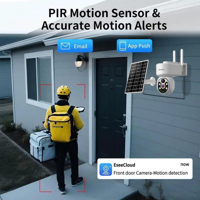 You would receive message in seconds, You could see who comes and goes. Siren and flash spotlight could be set to automatic when people come in camera view or mannual turn on. The motion zone feature is free for you. You could cover the area you don't want to receive notification (like street). Reduce fault alert, focus on the important matter ^^ 4 cameras live view at the same time & Multi-user view cameraThis home security camera support you live view max 4 cameras at the same time. And you could add as manny camera to the app youself.