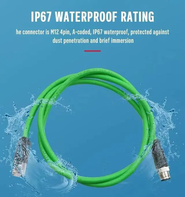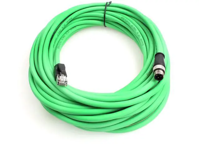 • M12 4pin D-code RJ45 E4 Plug ETHERNET Cable is a single foil twisted pair cat5e cable with a blue PUR jacket rated at 24 AWG wire M12 Connector with gold plated 4 pin coded contacts ensure reliable connectivity
