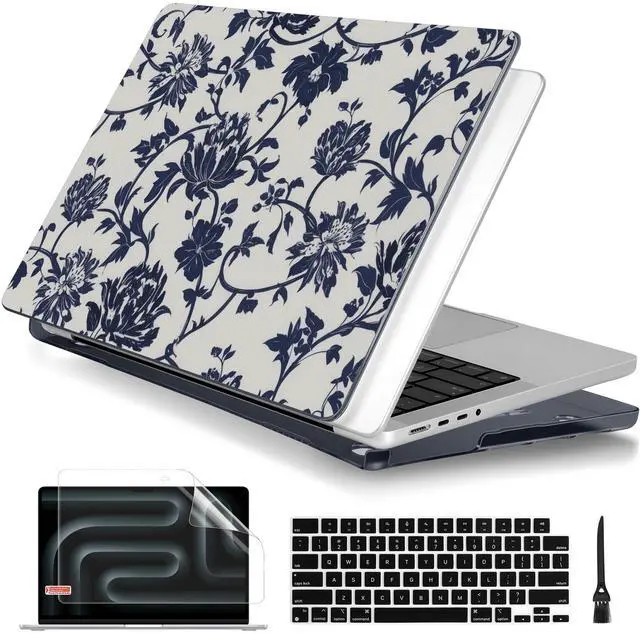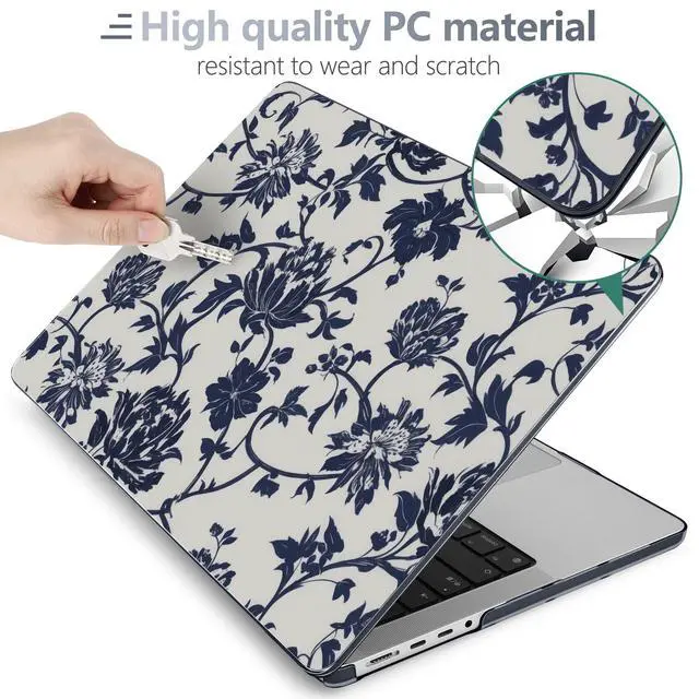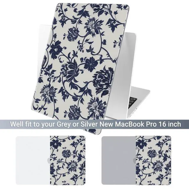 Batianda Case for New MacBook Pro 16 inch 2026 M5 2024 2023 2021 Release with M4 M3 M2 M1 Pro/Max Chip,Slim Lightweight Protective Shell Creative Pattern with Keyboard Cover Protector, Navy Flowers