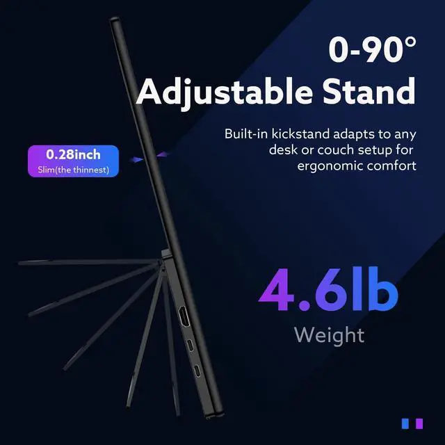HDMI Connectivity]: Equipped with two full-featured USB-C ports and one standard HDMI. You can easily connect with laptops, desktops, mobile phones and gaming consoles. Plug and Play, no driver required. ^^ [Built-in Stand &