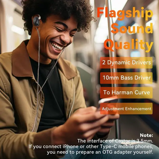 FLAGSHIP HIFI SOUND QUALITY: Engineered to match the Harman Curve acoustic standard, in ear earbuds Castor offers nearly identical bass enhancement and treble clarity, delivering a flagship-grade listening experience.