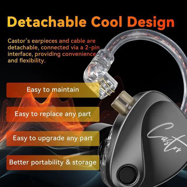 ^^ DETACHABLE DESIGN: In ear headphones wired Castor's earpiece and cable are detachable, connected via a 2-pin interface, facilitating component upgrades without the need for complete replacements, thus saving costs.