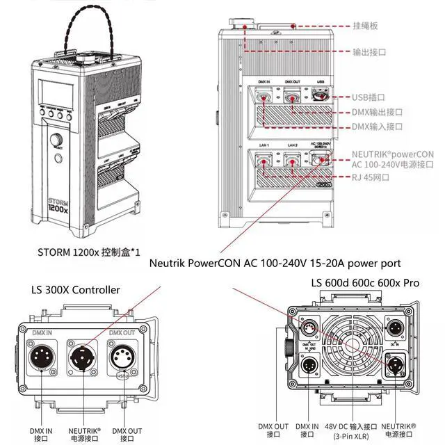 AC power supply cable for Aputure controller panel box STORM 1200x, light storm LS 1200d Pro, LS 600d, LS 600d Pro, LS 600c Pro II, LS 600x Pro, LS 300x, LS C300d II, LS C120d II, light Nova P600c P300c