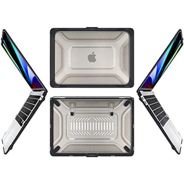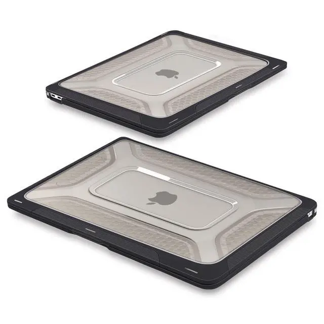 FINGERPRINTS & SCRATCHES: The matte PC back panel features a sculpted honeycomb texture that repels oily fingerprints, minimizes visible scratches, and improves hand grip. It maintains a clean, professional look over time while adding functional grip when carrying or repositioning your MacBook. ^^ PRECISION MOLDING & CENTRALIZED CORE COOLING: The large, centralized rectangular vents work in tandem with the honeycomb structure and elevated stance to maximize heat dissipation from the logic board core. Precision 1:1 laser molding ensures full access to Thunderbolt ports, Snap-on installation with anti-scratch micro-clips allows secure fit and easy removal in seconds.