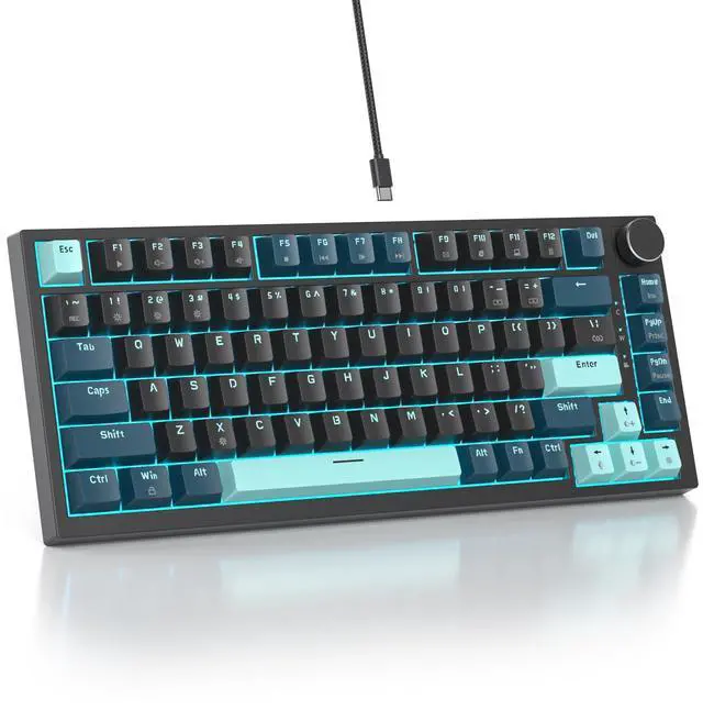 75% Percent Keyboard82 keycaps in a compact layout, this compact keyboard function keys and arrow keys at the same time, the multifunctional knob in the right corner of this keyboard media (volume, play/pause) are all in control with no hassle. ^^ Hot Swappable Mechanical Keyboard 3 pins or 5 pins hot swappable keyboard. Mechanical keyboard can be easily customised through the driver to suit your own usage habits. ^^ Ergonomic Gaming Keyboard The RGB Backlit gaming keyboard adopts PBT keycaps, anti-sweat, non-sticky and non-slip, The bottom of mechanical keyboard has double-ended foot support to stabilize the low profile mechanical keyboard position in any environment, so that the hands are always the most natural and relaxing state, to avoid the fatigue of prolonged using.