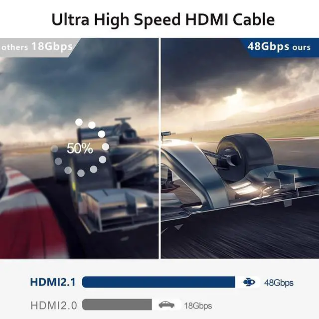Ihigh speed transmission with 48Gbps bandwidth for better visual experience. Backwards compatibility with all HDMI versions including HDMI 1.3 / 1.4 / 2.0 / 2.1, 4K / 8K, and support high speed 8K 48Gbps transmission.