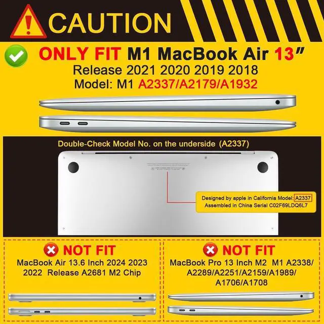 BUNDLE- STOP: Engineered EXCLUSIVELY for MacBook Air 13" 2020 2019 2018 release (model number: A2337A2179/A1932). Do not force onto other models. Please check the "Axxxx" model number on the bottom of your macbook air BEFORE purchase to ensure a perfect fit.