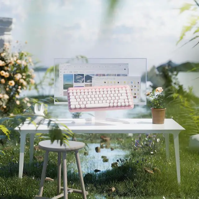 Retro Aesthetic: Features 84 typewriter-style floating round keycaps, combining vintage charm with modern functionality ^^