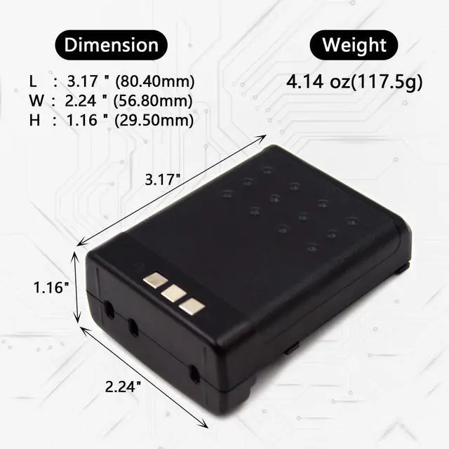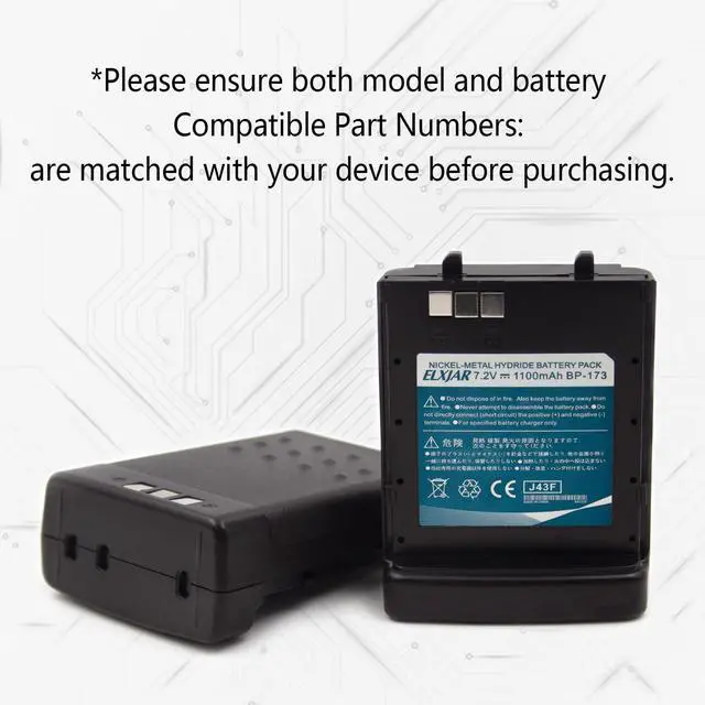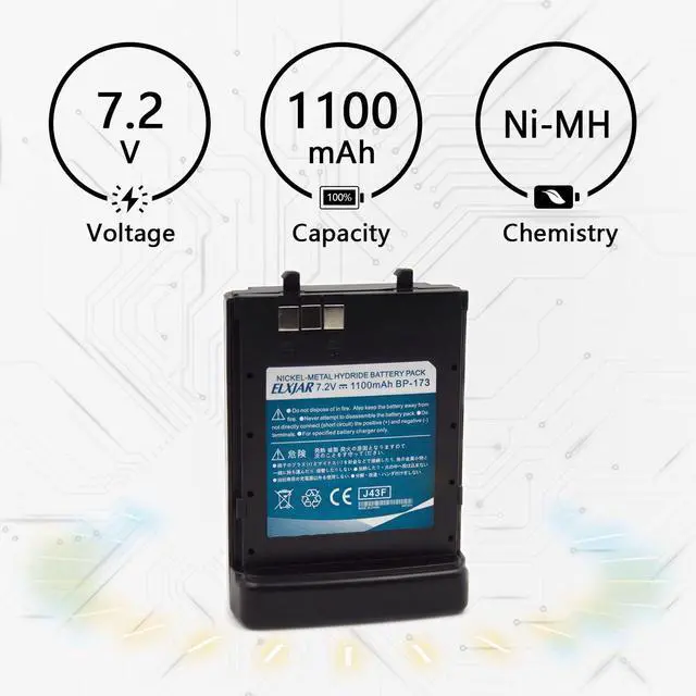 Upgrade your Icom two-way radios with this reliable 7.2V 1100mAh BP-173 Ni-MH battery replacement. Specifically designed for compatibility with a wide range of Icom models, including IC-T7H, IC-T22A, IC-W32A, IC-W31, BP-180, and BP-173, this battery ensures stable performance and extended usage. Built with durable Ni-MH technology, this battery pack offers consistent power output for reliable communication in any setting. Whether youre working on-site or exploring outdoors, you can count on its long-lasting performance. The battery is easy to install and fits perfectly, providing a seamless replacement solution for your original Icom batteries.