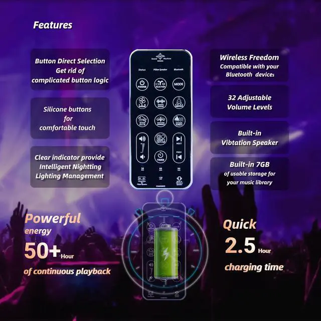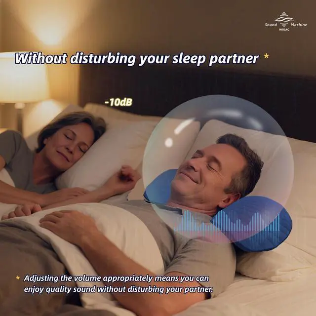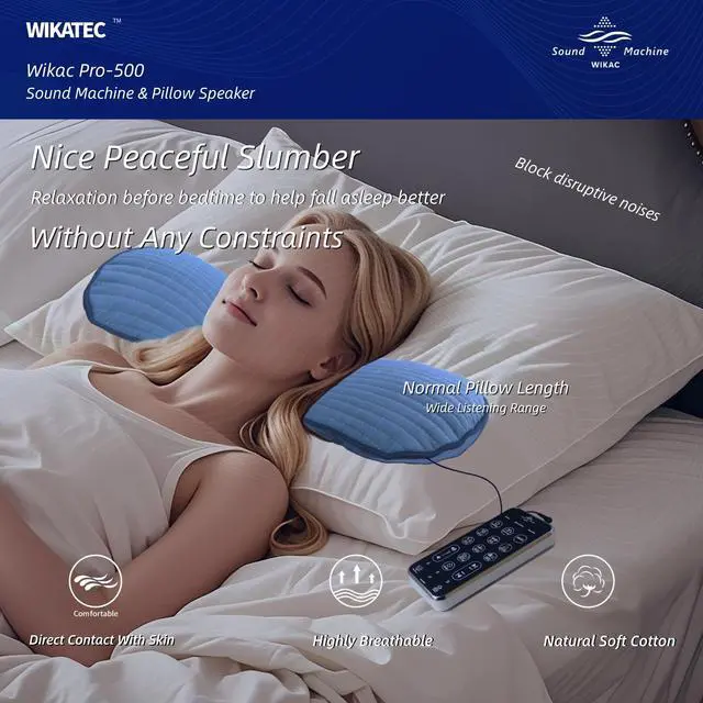 High-Fidelity Sound Wikac uses an enhanced full-range acoustic module that delivers clearer, louder, and warmer sound. Hear every detaileven through thick pillowswithout distortion or muffled audio. ^^ Low-interference design Off-pillow controller minimizes interference around your head, keeps operations simple, and removes safety worries. ^^ Side-Sleep Comfort Soft, washable cotton ultra-thin pillow for use on/under your pillowno ear pain, no pressure. ^^ Calming Sleep Sounds Built-in studio-tuned white noise and soundscapes help create a calming pre-sleep environment, quiet your mind, and support deeper relaxation. ^^ Long Battery Life, No Disturbance, 5 Timers Once fully charged, it lasts for over 50 hours.
