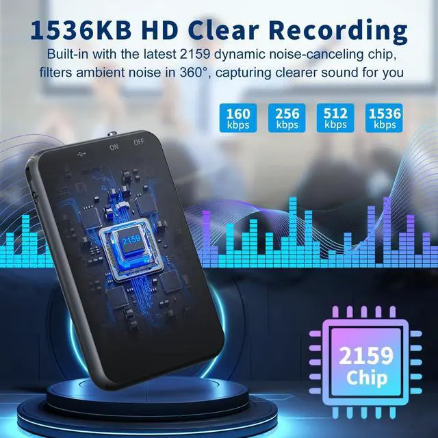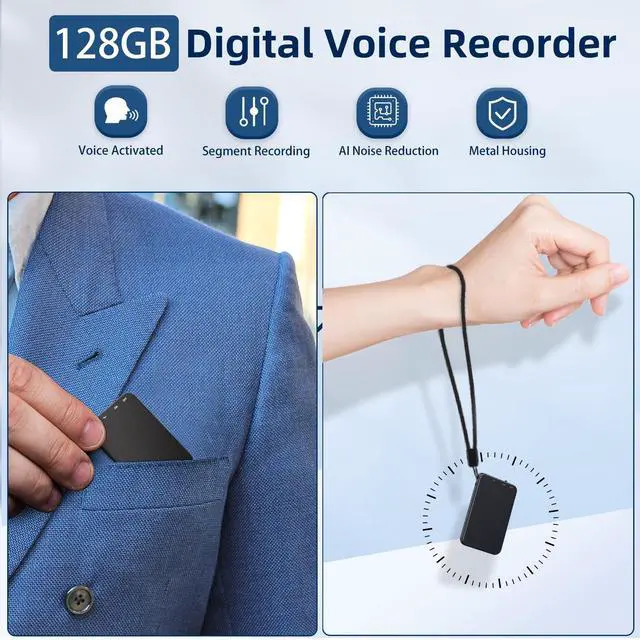 True-to-Life Sound: Equipped with an AI DSP 4.0 chip and advanced noise reduction, this digital recorder intelligently filters background noise and enhances voices. With recording quality up to 1536Kbps, every word sounds clear, natural, and easy to understand ^^ Smart Voice Activation Records Only What Matters: Automatically starts recording when sound exceeds 50dB and pauses during silence. No whispering, no empty filesjust clean, efficient recordings that save battery and storage. Ideal for interviews, dictation, and classroom discussions ^^ Sleek, Portable Design for