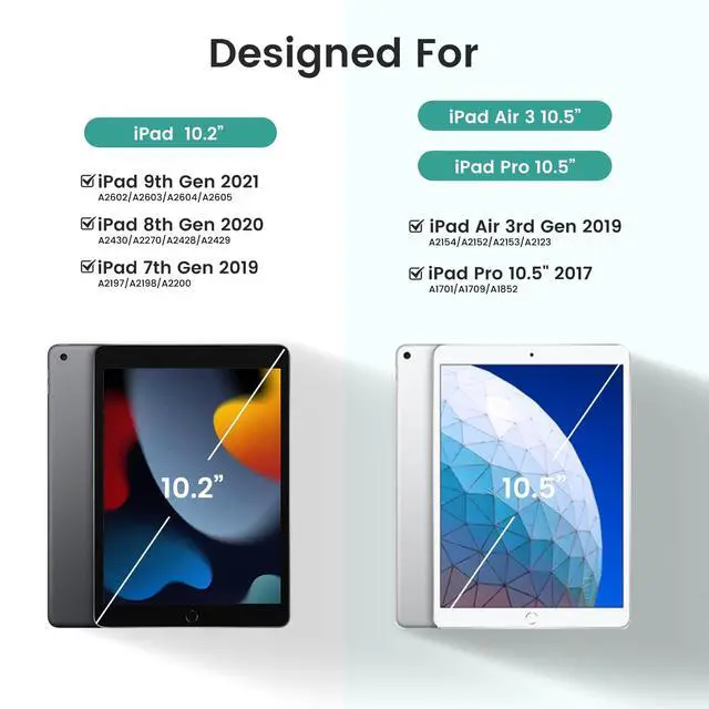 Case with Keyboard: A2154, A2152, A2153, A2123; iPad Pro 10.5 inch case with keyboard: A1701, A1709, A1852; Please kindly check your iPad model number on the back of your devices before purchasing (NO PEN included) ^^ BACKLIT KEYBOARD The magnetic keyboard and case are separated, magnetically attached, the keyboard can be removed from the case. 3 levels of brightness and 7 vibrant colors make typing fun and easy in the dark or the light. The Keyboard can be attached to the case magnetically, if not needed, it can be removed. Bluetooth connectivity is easy to operate ^^ HONEYCOMB CASE The keyboard case inner layer provides honeycomb grid pattern cushion that can release over 80% more heat than devices cases, protect your devices from overheating, and longer the lifespan for over 30%. And built-in Pencil Holder keeps your Pencil in easy reach (NO PEN included) ^^ AUTO SLEEP/WAKE FUNCTION It automatically wakes or puts your devices to sleep when it is opened or closed, save much power for your devices. The Precise cutouts allow easy access to all ports, camera, speakers, headphones Jack and Volume controls. To achieve the perfect effect of sleep wake-up, please remove the keyboard, because the keyboard with the iron will hinder the mutual attraction between the magnets ^^ OPAKIT Quality GuaranteeThe durable case has a soft TPU inner shell, protects your devices from drop and scratch.
