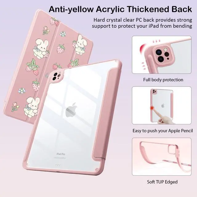 Please Note: It doesn't compatible with any other tablet models ^^ Well made with PU exterior, microfiber lining and soft silicone frame and clear acrylic back cover, offers full body protection from drops and scratches ^^ Built-in Apple Pencil holder, supports wireless charging, grab your Apple Pencil effortlessly whenever you want ^^ Cover has flip capability to transform the case into a viewing stand and typing stand. Available in a variety of bright colors and unique pattern ^^ Built-in magnetic strip provides auto sleep / wake function. Precise cutout and design allow easy access to all ports, sensors, speakers, cameras