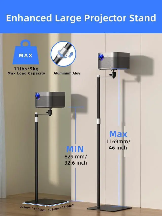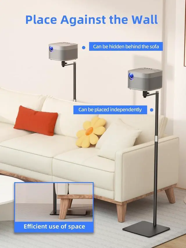 The Thickened "L" shape and aluminum aloy screw design is not only aesthetically pleasing but also stable functional and not shaking. It can be easily set up behind the sofa, bed, or anywhere you want. The projector stand will fit perfectly in any living room, study, or bedroom decor. And the whole EVA protective pad, can better protect the ground. ^^ Compatibility Notice and Warranty- Please note that the Projector Stand is exclusively compatible with projectors featuring a 1/4" bottom center screw hole. We kindly advise verifying your projector's specifications before making a purchase.