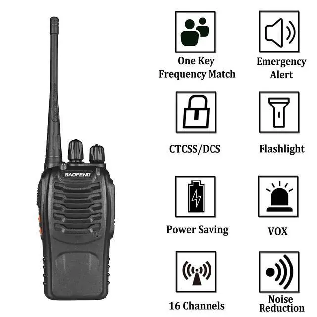 Easy to Use: Ready to use out of the box; simply tune to the same channel to communicate directly with the 888S walkie-talkie. No complicated button operations are required, making it easy for employees or teams to quickly get started. This portable handheld walkie-talkie is compact, durable, lightweight, and easy to carry. The headset features a microphone button for convenient communication during outdoor activities or work. ^^ 5.